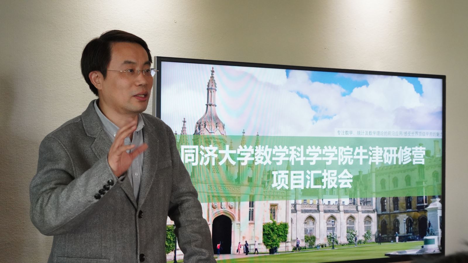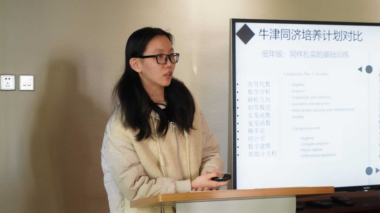 汇报会通过一段视频全面介绍此次牛津之行的概况,2017级数理金融班彭任锋、2018级数理金融班邹铭睿、2016级试点班申铭洁三名同学分别从不同的角度,畅谈此次研修活动的体会和感受。彭任锋以A beautiful world of MATH为题,介绍了在访学中印象最为深刻的数学课程,领略到数学的美妙世界,他也通过此次访学找寻到不断前进的Inner Passion,以及体验未知、追求真理的科学精神;邹铭睿以综合实力提升为切入点,向我们展示了牛津访学中的素质拓展类课程。通过形式多样Workshop,她学会了如何做汇报、如何制作简历以及如何用视频表达自己的态度和观点,从而提升个人的表达力和对数学的理解,她认为,自信表达应该是每一位同济人的必修课;申铭洁从“打破认知、提升品味”,“体验文化、开阔视野”和“团队赋能、锻造实力”三个方面,分享收获与成长,她表示对标世界一流大学,牛津访学让同学们看到更高的目标以及更大的可能性。