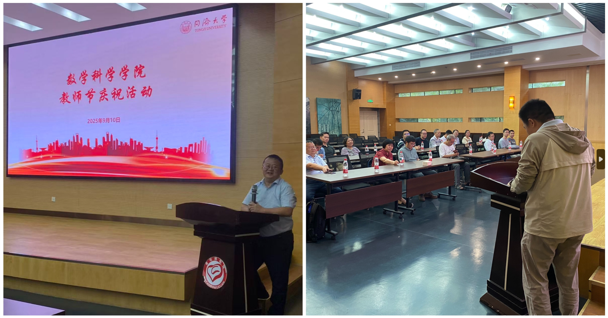 紧接着是新教师入职仪式。各教研室主任为新进教师送上入职纪念品及《师德师风手册》,并致欢迎词,勉励新教师传承同济数学人的优良传统,恪守师德、潜心育人、追求卓越。新进教师表示将以华罗庚先生等前辈为榜样,以教育家精神为引领,尽快融入学院大家庭,为培养更多优秀数学人才、推动学科发展贡献自己的力量。