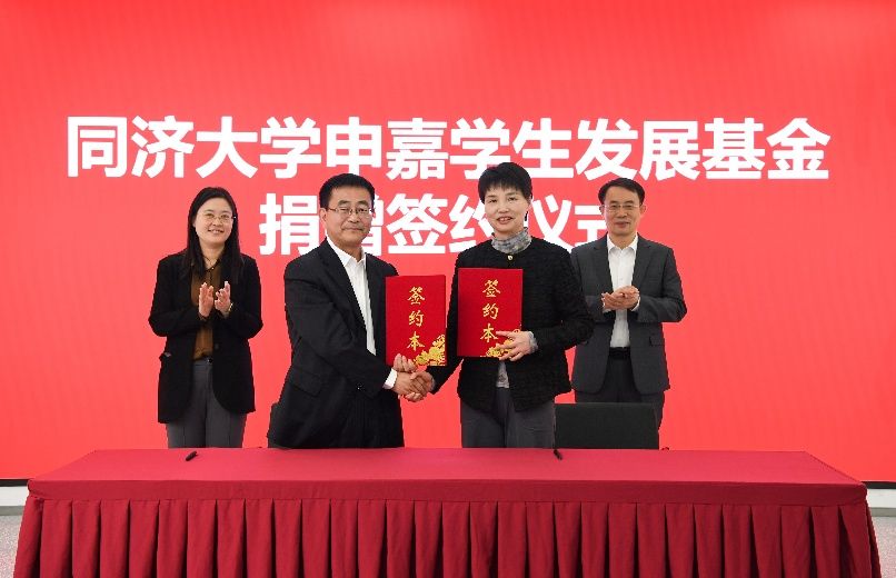 在现场嘉宾的共同见证下,签约仪式顺利举行,现场气氛温馨而热烈。据悉,申嘉学生发展基金将设立“启航”“启明”“扬帆”三大专项奖学金,分别对应海外研修、短期访学、国际会议三类需求,为同济数学学子对接国际前沿学术资源、参与跨文化学术交流、锤炼专业实践能力提供专项支持。