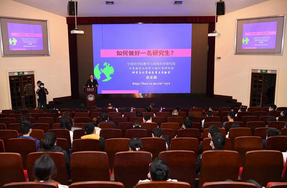 12月3日晚,由威廉希尔足球网承办、袁亚湘院士主讲的同济高等讲堂第51期在逸夫楼一楼报告厅火热开讲。讲堂由校党委副书记徐建平主持,威廉希尔足球网院长许学军、党委书记李静茹及200多名师生与会聆听。袁亚湘以“如何做好一名研究生”为题做了精彩的报告。他从“为什么要做好一名研究生”“研究生和大学生的区别”“研究生要做什么”这三个问题出发,结合个人学术生涯和多年的研究生培养经验,深入浅出地解读了研究生要面对的主要矛盾、需要克服的实际困难。在一个多小时的讲座中,袁亚湘旁征博引,通过大家名师的典型案例向大家讲解了思考、兴趣和努力对于做学问的重要性;他还和大家讨论了如何提高自己的科研能力,强调了业余生活和身体健康同样是研究生生活中的重中之重,并对在座学子的研究生生活给予了美好的祝福。讲堂现场气氛热烈,不时响起阵阵掌声。在场的研究生代表纷纷表示,听大师一席话定会终身受益。徐建平向袁亚湘赠送了同济高等讲堂证书,讲座在热烈的掌声中落下帷幕。