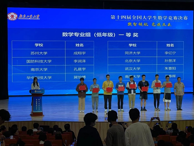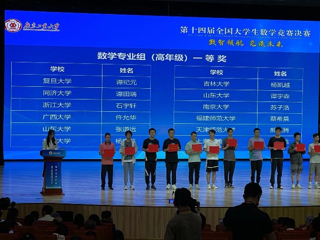 2023年5月26日-28日,第十四届全国大学生数学竞赛决赛在广东工业大学成功举办,我校6位同学作为上海市代表参加了此项赛事。经过激烈角逐,我校斩获3项一等奖、3项二等奖,再创历史新高。