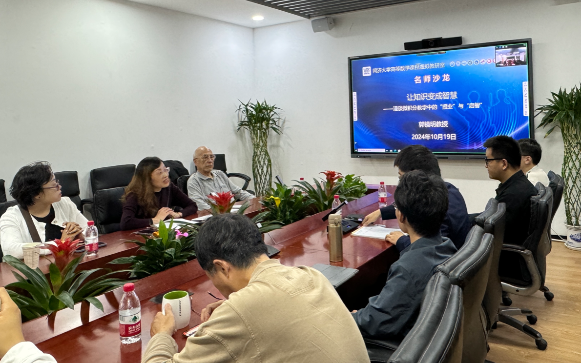 10月19日下午,williamhill官网高等数学课程虚拟教研室成功举办第八期“名师沙龙”活动。本期“名师沙龙”活动邀请到williamhill官网和西交利物浦大学郭镜明教授作主题报告,报告题目为“让知识变成智慧一一漫谈微积分教学中的‘授业’与‘启智’”。本次教研活动依托虚拟教研室平台,采用线上线下同步开展的形式,由虚拟教研室负责人周朝晖教授主持,威廉希尔足球网副院长李忠华教授出席活动并致辞,虚拟教研室成员以及全国多所高校的大学数学课程建设负责人、骨干教师、青年教师参会。