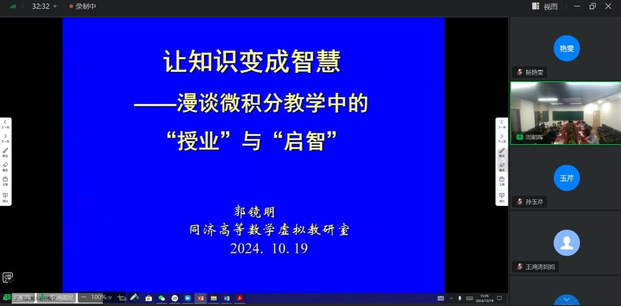郭教授还结合自己四十余年的数学基础课教学实践经验,分享了一些处理和组织教学内容的具体案例。他强调,对于微积分中的基本概念和定理,教师应避免照本宣科,而是要用自己的语言解释清楚它们的数学内涵和重要意义。此外,他还提倡在教学中渗透建模思想,加强对概念、理论和方法的几何、物理背景及应用场景的介绍,并注重培养学生对数值的直觉和敏感性,以及对数学史料的灵活运用。