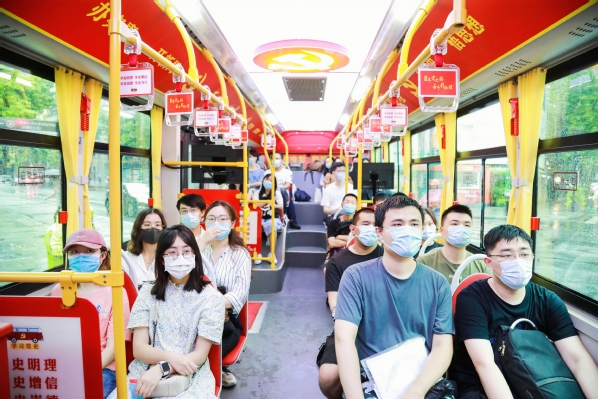 围绕车览“百年党史在上海的精彩演绎”这一主线,行驶中的党史巴士把上海珍贵的红色资源串点成线,将历史故事和现实场景相融合,打造出一堂跨越浦江两岸、贯穿百年历史的精品党课。这一创新的“巴士课堂”由东方财经·浦东频道运营,是我院开展党史学习教育的重要阵地,已累计组织4次研学活动,并成立了一支巴士课堂讲解队,目前已有20余名师生担任义务讲解员,服务了百余名来自各个行业、各个领域的学习者。