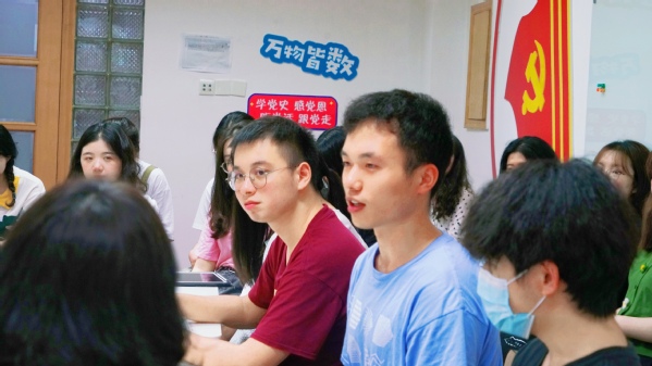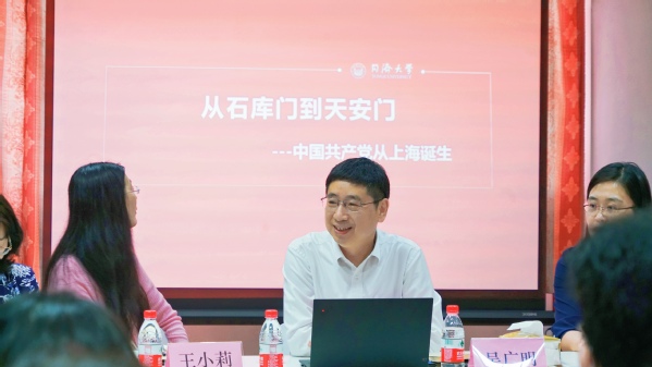 随后,吴书记带领同学们回顾上海红色基因百年传承的历史,探寻中国共产党的初心与使命。他先介绍了从鸦片战争时期开始,中国的有志青年在寻求救亡图存的路上探索新的组织,中国共产党产生并登上历史舞台的那段光辉历史。围绕中国共产党的建立过程,吴书记向同学们讲述了红色上海的力量源泉,从思想文化传播、交通、社会基础、通讯等要点分析了上海之所以能成为党的诞生地的具体原因。同时,吴书记向同学们展示了上海作为中国的红色总源头,具有丰富的红色资源和红色足迹,并以石库门为例,介绍了其作为党在上海活动的见证者,与中国共产党结下的不解之缘。